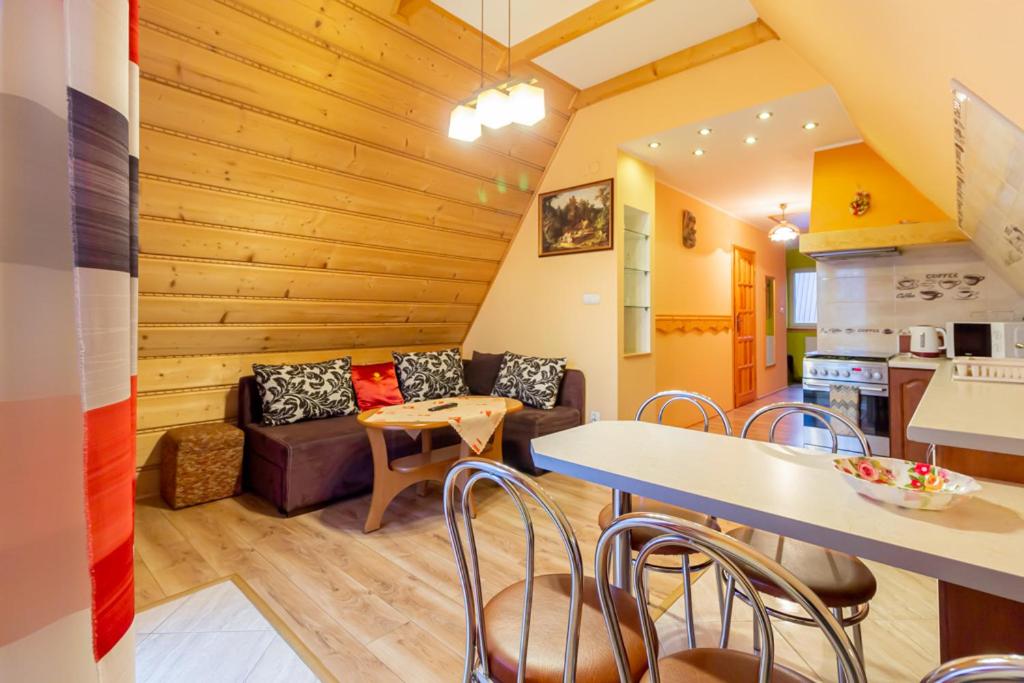 Apartament z 2 sypialniami. This apartments special feature is the fireplace. Guests can make meals in the kitchen that is equipped with a stovetop, a refrigerator, kitchenware and an oven. Featuring a balcony with garden views, this apartment also provides a dining area and a flat-screen TV. The unit offers 5 beds. Apartament - 8 osobowy. Powierzchnia pokoju ok.: 60 mkw. ;