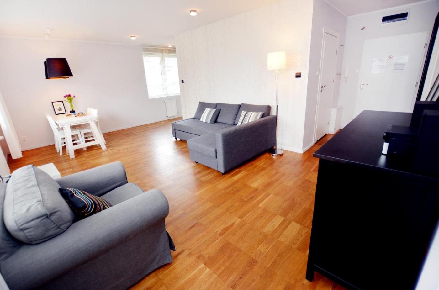 Apartament z 1 sypialnią. This apartment comprises 1 living room, 1 separate bedroom and 1 bathroom with a shower. The well-equipped kitchenette features a stovetop, a refrigerator, a dishwasher and kitchenware. Featuring a terrace with garden views, this apartment also provides a washing machine and a flat-screen TV. The unit offers 2 beds. Apartament - 4 osobowy. Powierzchnia pokoju ok.: 50 mkw.