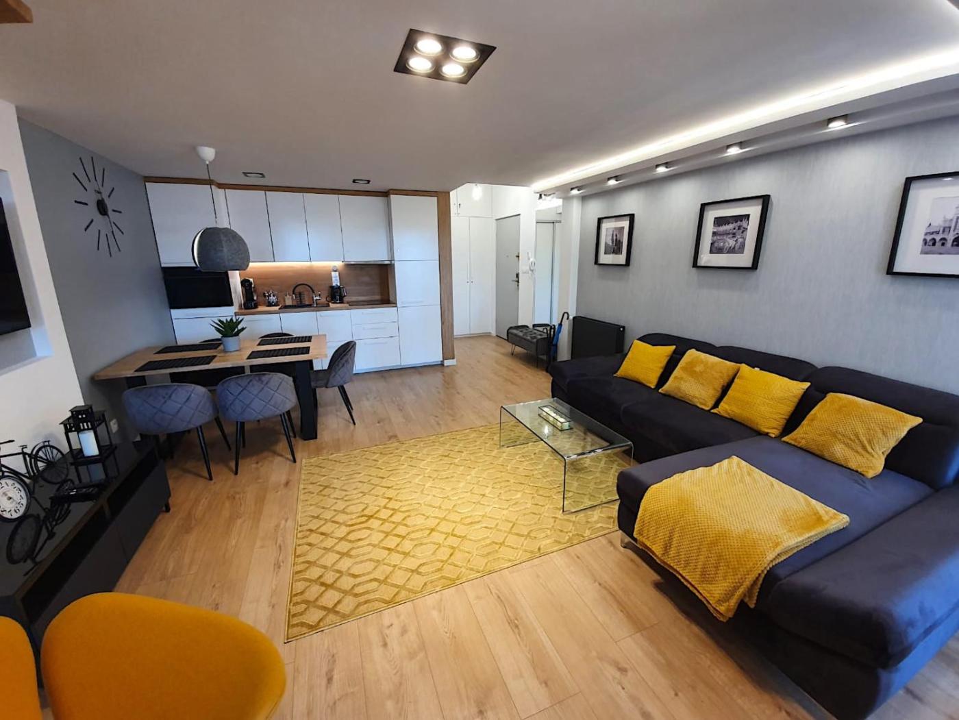 Apartament z 3 sypialniami. In the well-fitted kitchen, guests will find a stovetop, a refrigerator, a dishwasher and kitchenware. The spacious apartment features a flat-screen TV, a washing machine, a private entrance, a tea and coffee maker as well as city views. The unit has 5 beds. Apartament - 9 osobowy. Powierzchnia pokoju ok.: 80 mkw.