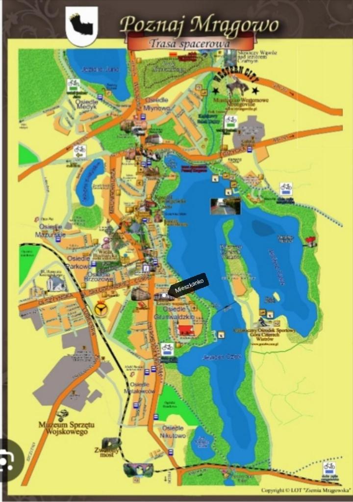 Obiekt Przytulne Mieszkanko Centrum usytuowany jest w miejscowości Mrągowo. Odległość ważnych miejsc od obiektu: Sanktuarium Maryjne w Świętej Lipce – 21 km, Ratusz w Mrągowie – niecały kilometr, Mrongoville – 3,6 km. Odległość ważnych miejsc od apartamentu: Park wodny Tropikana – 22 km, Wioska Żeglarska – 24 km.