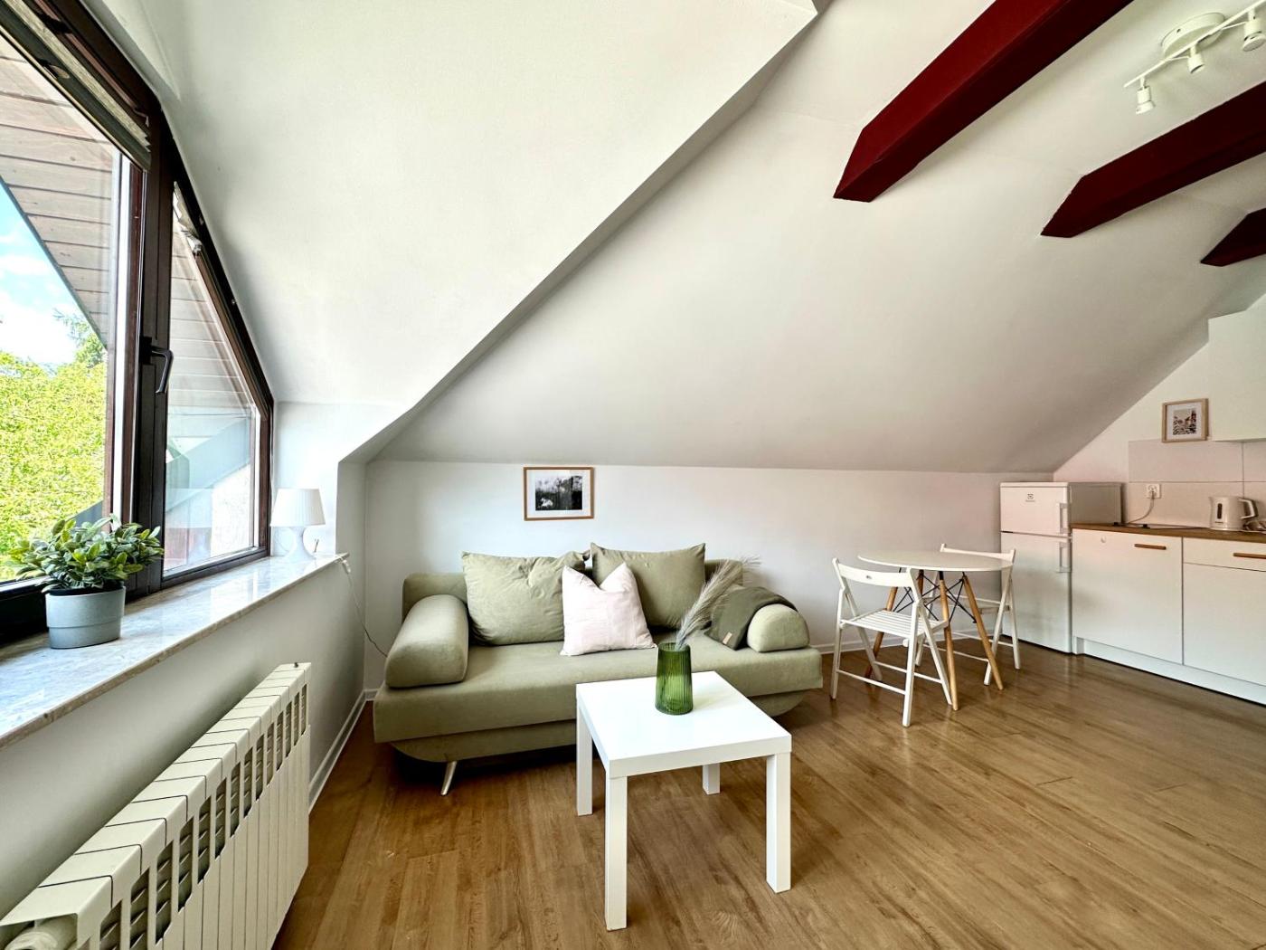 Studio. The studio offers a washing machine, a dining area, as well as a private bathroom boasting a shower. The kitchenette has a refrigerator, kitchenware and an electric kettle. The studio provides a wardrobe, parquet floors, a tiled floor, heating and a flat-screen TV. The unit has 1 bed. Studio - 2 osobowy. Powierzchnia pokoju ok.: 20 mkw.