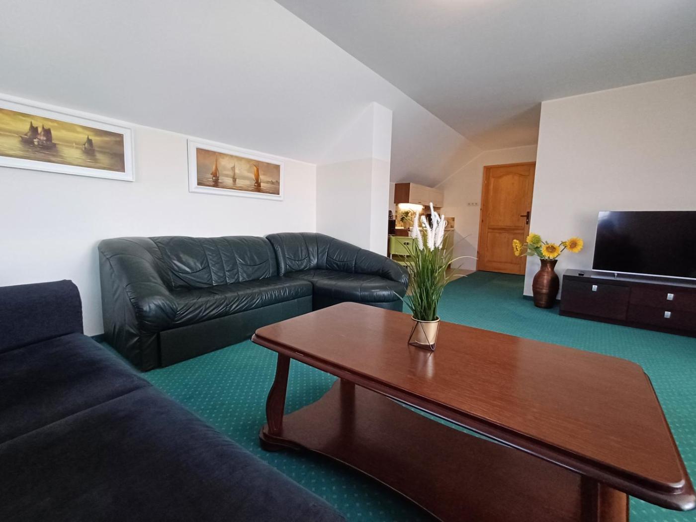Apartament z 2 sypialniami. This apartment comprises 1 living room, 2 separate bedrooms and 1 bathroom with a shower. Meals can be prepared in the kitchenette, which comes with a stovetop, a refrigerator, a dishwasher and kitchenware. Featuring a balcony, this apartment also provides a coffee machine, a sofa and a flat-screen TV. The unit offers 5 beds. Apartament - 6 osobowy. Powierzchnia pokoju ok.: 45 mkw. ;