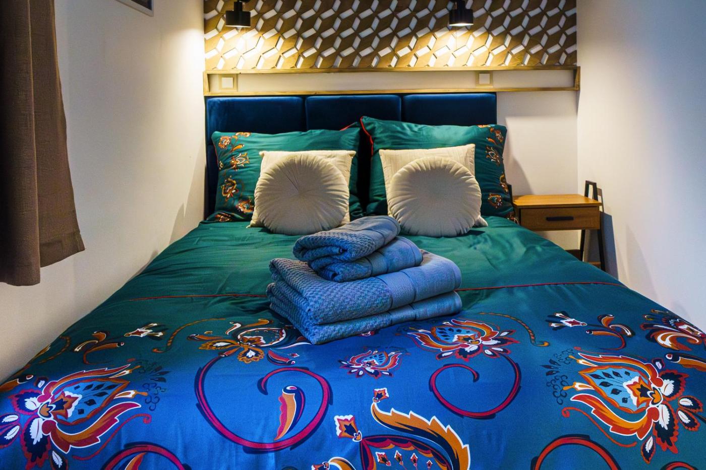 W apartamencie do dyspozycji gości przygotowano sypialnię (1), jadalnię, kuchnię z lodówką oraz salon. Wyposażenie obejmuje też telewizor z płaskim ekranem z dostępem do kanałów kablowych. W apartamencie zapewniono ręczniki i pościel.