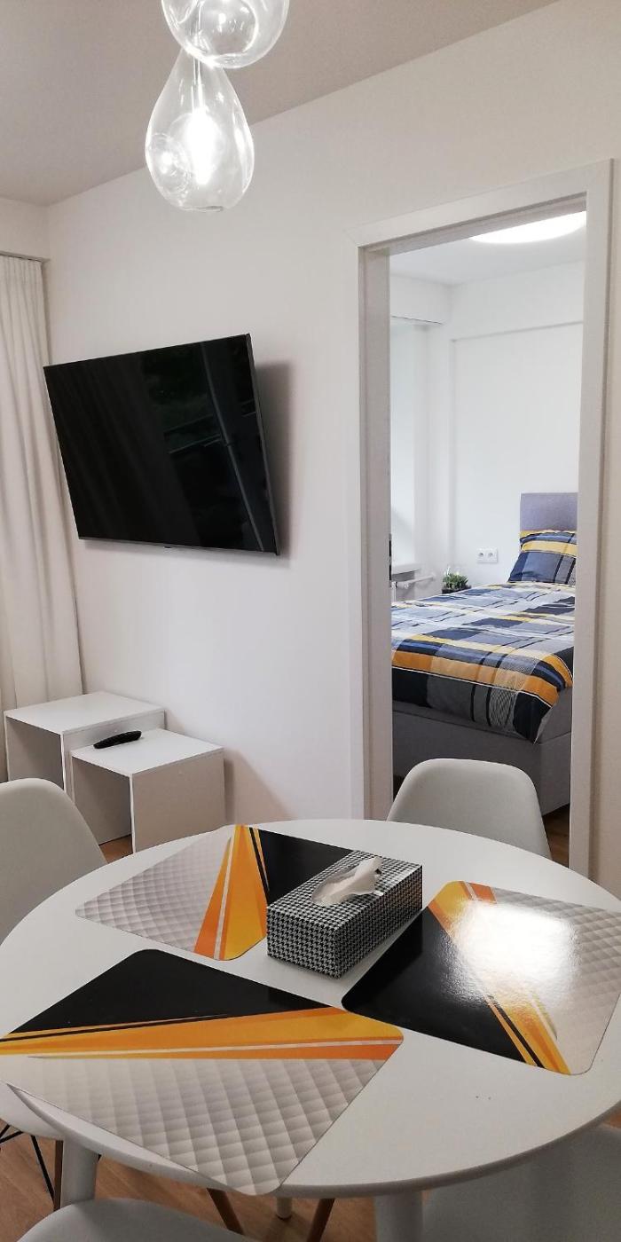 Apartament z 1 sypialnią. Guests will have a special experience as this apartment offers a sauna. Featuring a private entrance, this air-conditioned apartment is comprised of 1 living room, 1 separate bedroom and 1 bathroom with a walk-in shower and a bidet. The well-fitted kitchenette has a stovetop, a refrigerator, a dishwasher and kitchenware. The apartment features parquet floors, a seating area with a flat-screen TV, a washing machine, a tea and coffee maker as well as lake views. The unit offers 2 beds. Apartament - 2 osobowy. Powierzchnia pokoju ok.: 31 mkw.