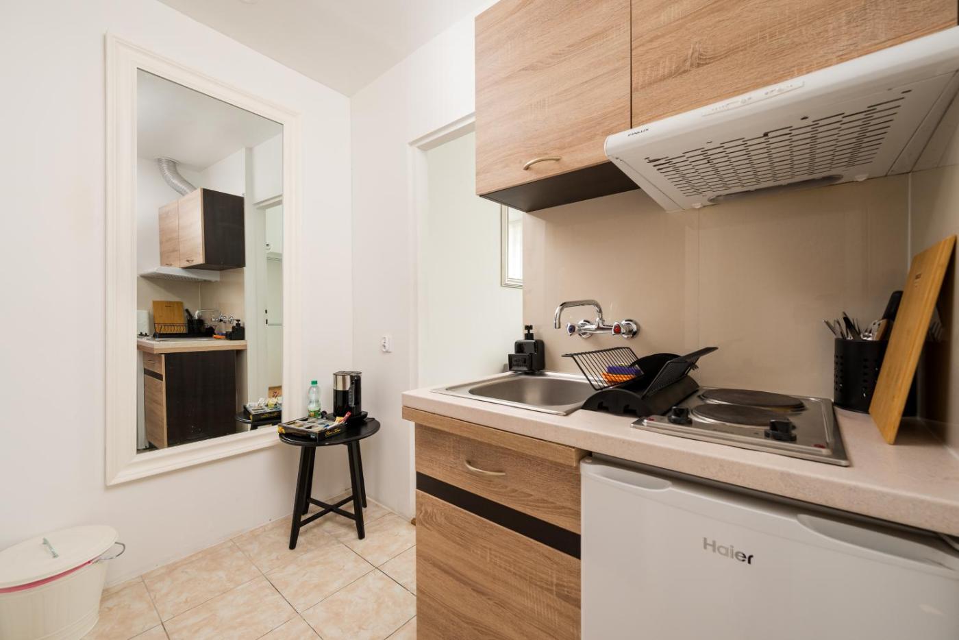 Kuchnię wyposażono w lodówkę, płytę kuchenną i toster. Goście mają do dyspozycji również prysznic, bezpłatny zestaw kosmetyków oraz suszarkę do włosów.