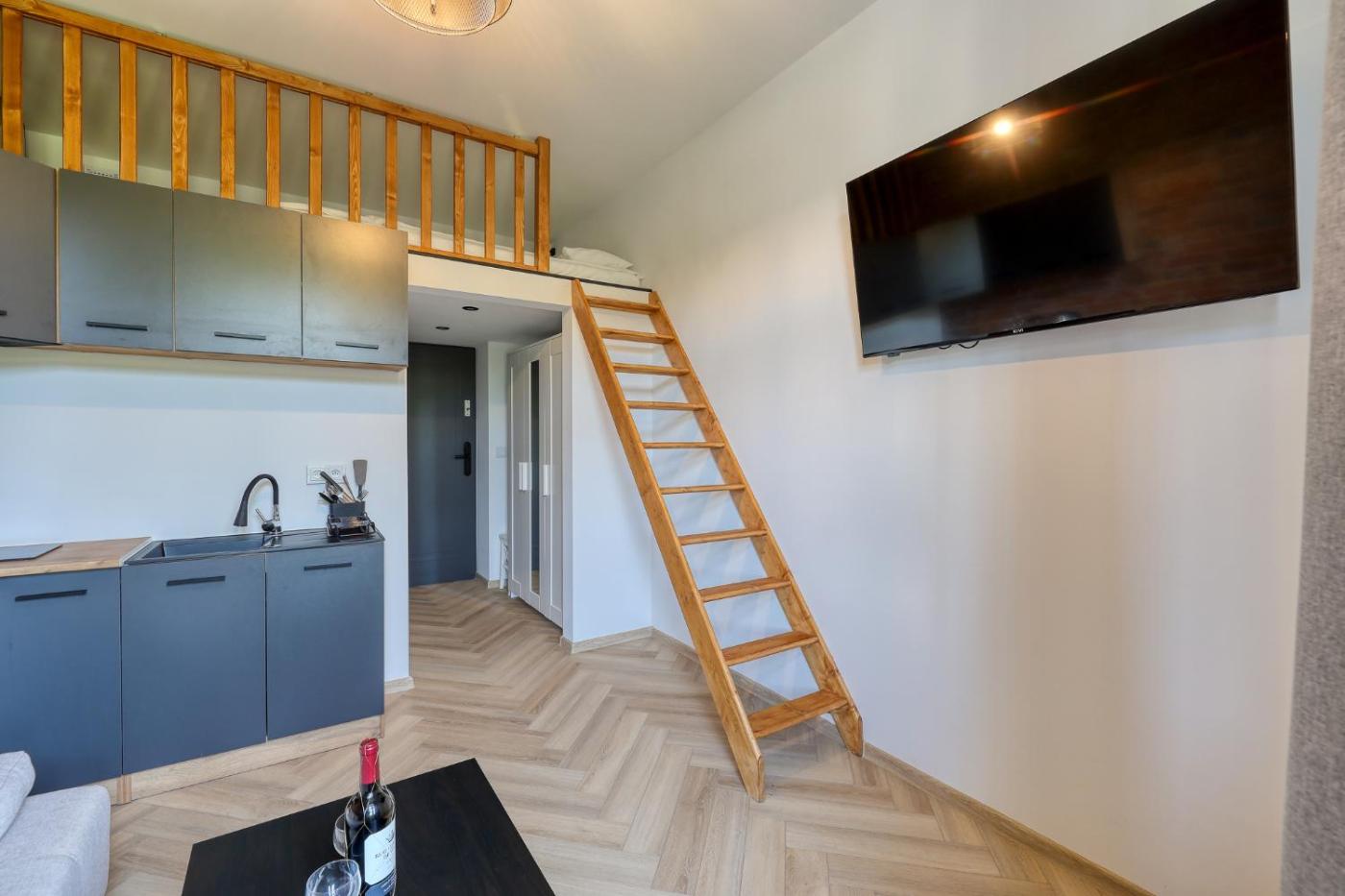 Apartament z 1 sypialnią. In the fully equipped kitchenette, guests will find a stovetop, a refrigerator, kitchenware and a microwave. The apartment features a wardrobe, an electric kettle, a sofa, a flat-screen TV with streaming services, as well as a quiet street view. The unit has 2 beds. Apartament - 2 osobowy. Powierzchnia pokoju ok.: 16 mkw.