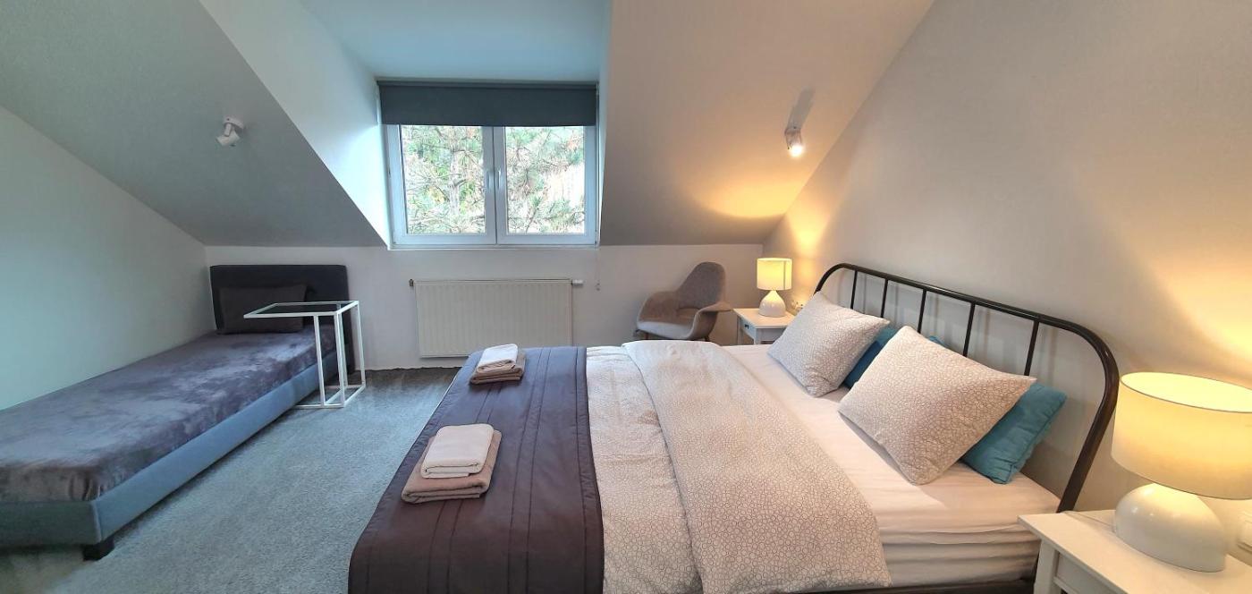 Apartament. Boasting a private entrance, this air-conditioned apartment includes 1 living room, 1 separate bedroom and 1 bathroom with a walk-in shower and a bath. Guests will find a stovetop, a refrigerator, a dishwasher and kitchenware in the kitchen. The apartment also features a barbecue. The spacious apartment offers a washing machine, soundproof walls, a tea and coffee maker, a flat-screen TV with streaming services, as well as garden views. The unit has 3 beds. Apartament - 3 osobowy. Powierzchnia pokoju ok.: 80 mkw.