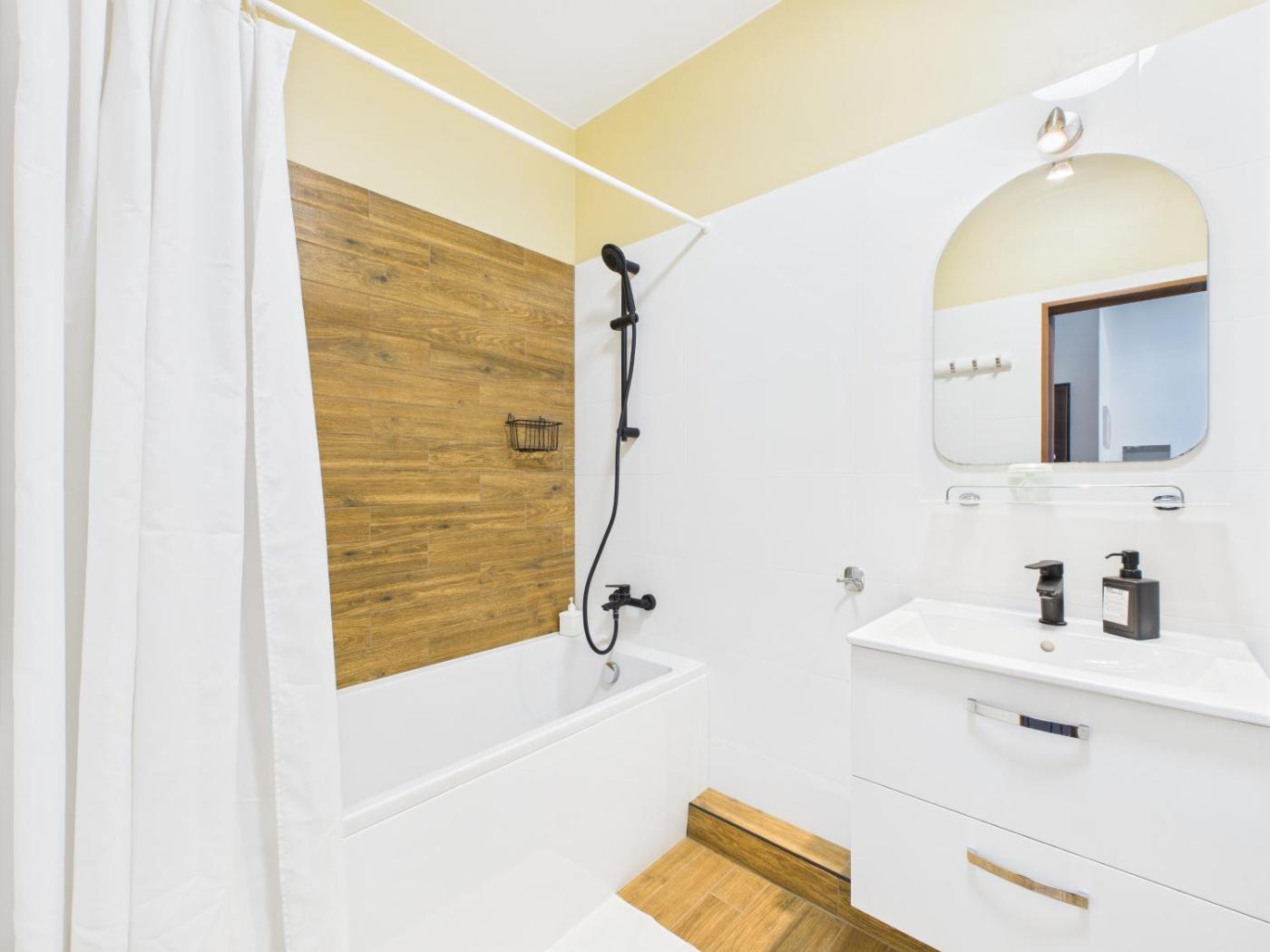Apartament z 1 sypialnią. This apartment features 1 living room, 1 separate bedroom and 1 bathroom with a bath or a shower and a hairdryer. A kitchenette fitted with a stovetop, a dishwasher and kitchenware is available for cooking and storing food. Boasting a balcony with ancourtyard view, this apartment also features a washing machine and a flat-screen TV. The unit has 2 beds. Apartament - 4 osobowy. Powierzchnia pokoju ok.: 45 mkw.