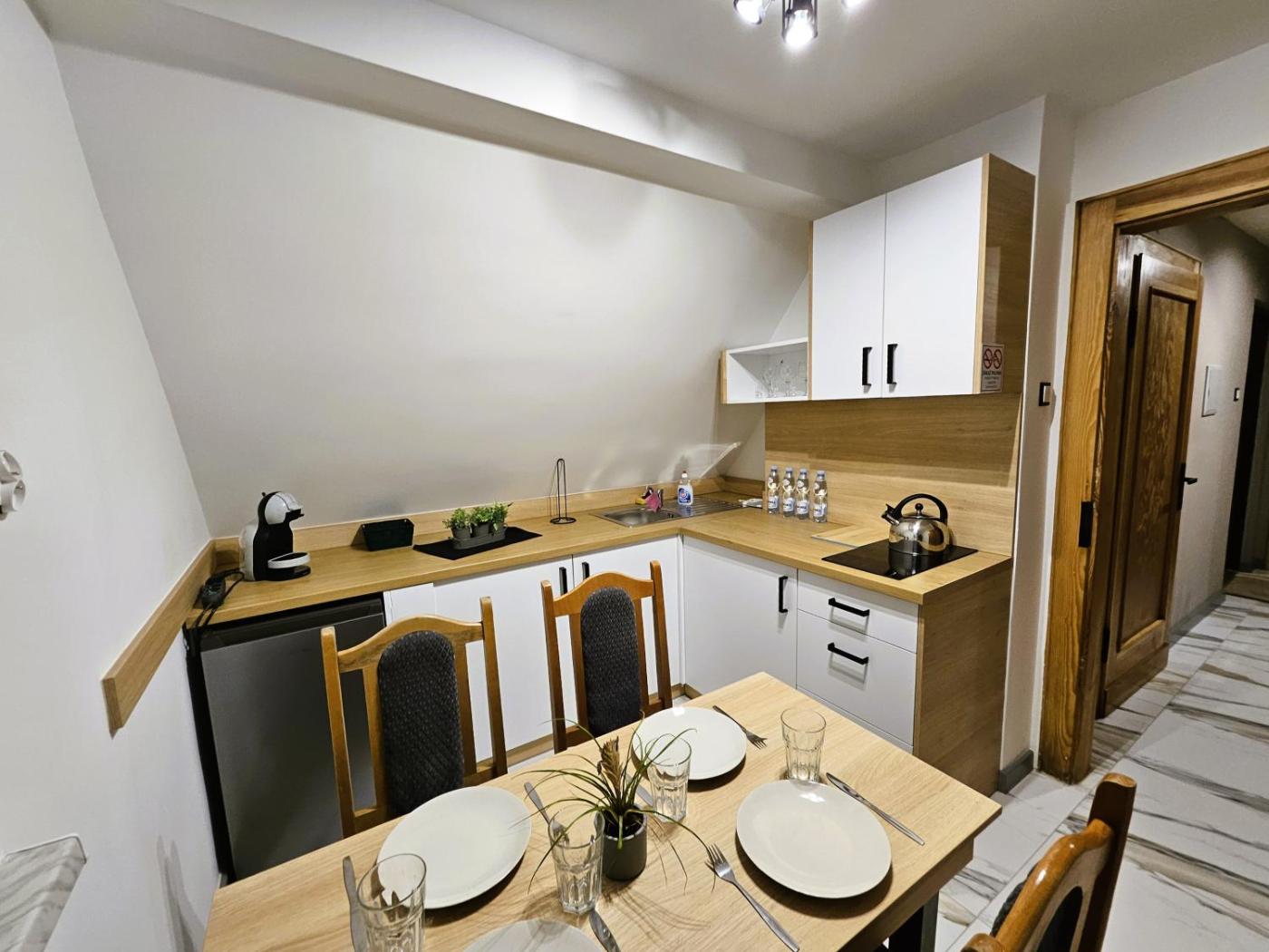 Apartament z 2 sypialniami. This spacious apartment is comprised of 1 living room, 2 separate bedrooms and 1 bathroom with a bath and free toiletries. The fully equipped kitchen features a stovetop, a refrigerator and kitchenware. The apartment offers a flat-screen TV with streaming services, a coffee machine, a seating area, a dining area as well as garden views. The unit offers 3 beds. Apartament - 6 osobowy. Powierzchnia pokoju ok.: 82 mkw. ;
