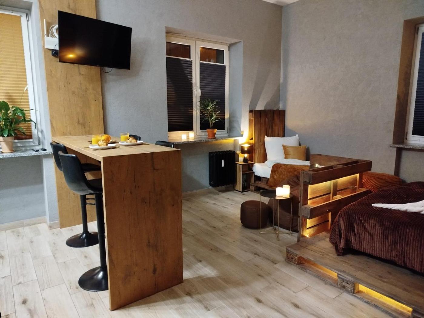 Studio typu Deluxe. Providing free toiletries, this studio includes a private bathroom with a shower, a hairdryer and slippers. In the kitchen, guests will find a stovetop, a refrigerator, kitchenware and a microwave. The studio provides a private entrance, soundproof walls, a tea and coffee maker, a wardrobe and a flat-screen TV. Studio - 3 osobowy. Powierzchnia pokoju ok.: 31 mkw.